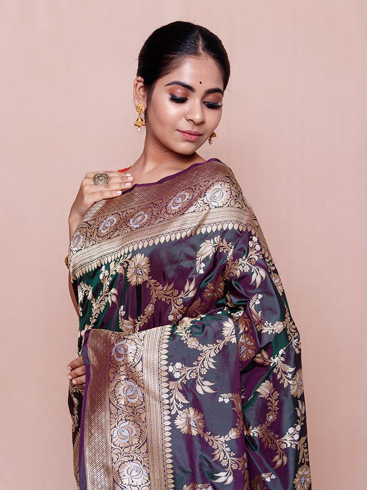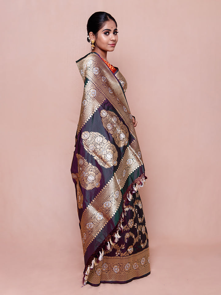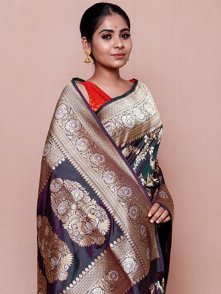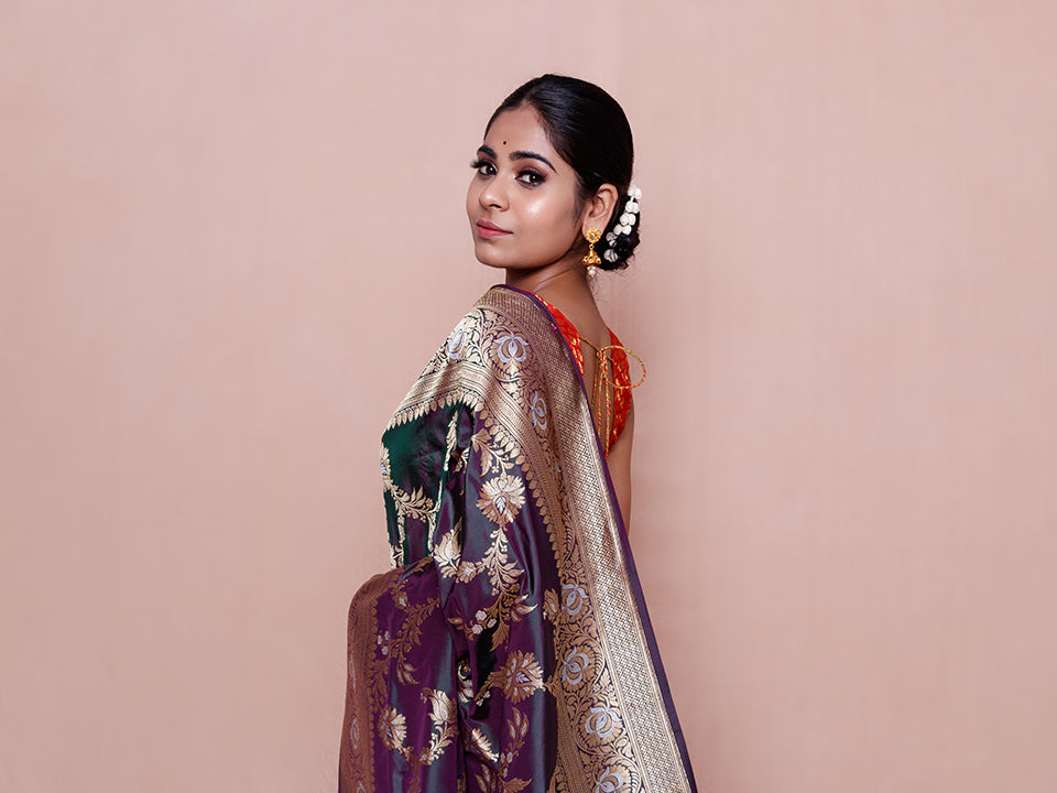 - Speciality – A gorgeous silk body woven in the finest kadhua style with a geometrical border and pallu. An absolutely elegant and understated Banarasi weave.