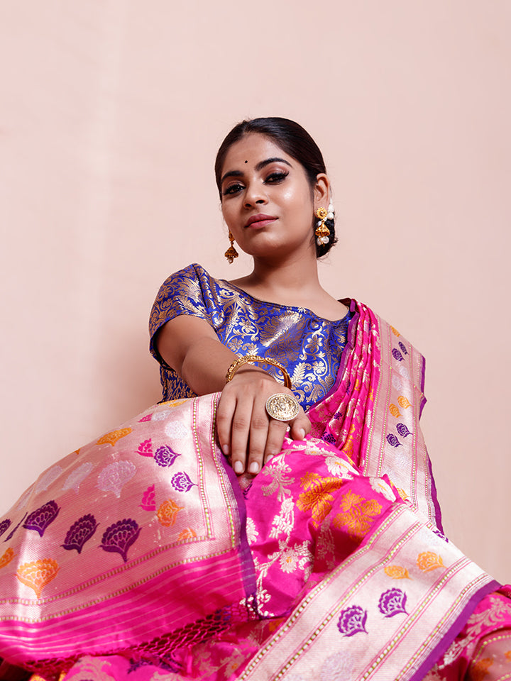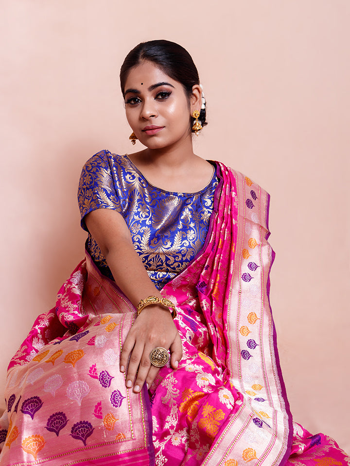 Please note that our textiles are handcrafted and handwoven leading to slight irregularities in design and fabric making each piece unique from others. Additionally, professional lighting may cause some colours to look slightly different on screen from what they would look like in real life. We sincerely hope you will appreciate and respect these unique traits of handloom products. For more clarity on your purchase, kindly contact us for a video call.