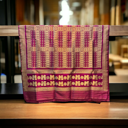 Color – A stunning Rani pink Technique – An enduring Kadwa weave. The elaborate and laborious Kadwa...