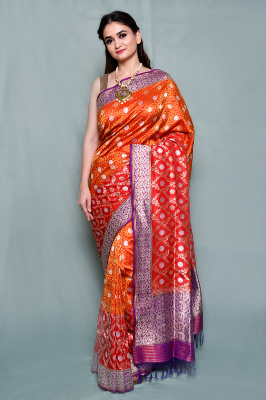 Color – A stunning Orangish Red Technique – An enduring Kadwa weave with Kadhiyal Border....