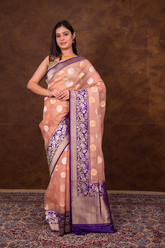 Color – A stunning shade of peach Pink Technique – An enduring Kadwa weave. The...