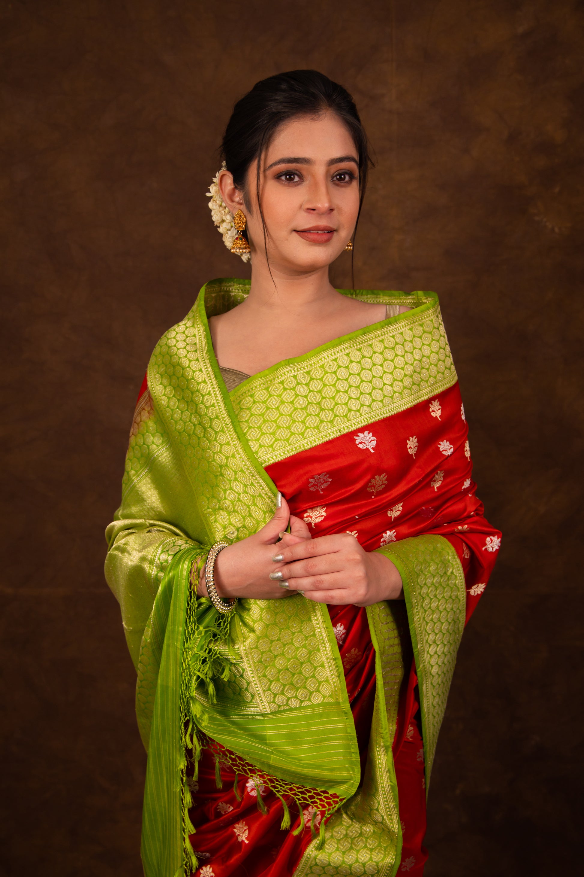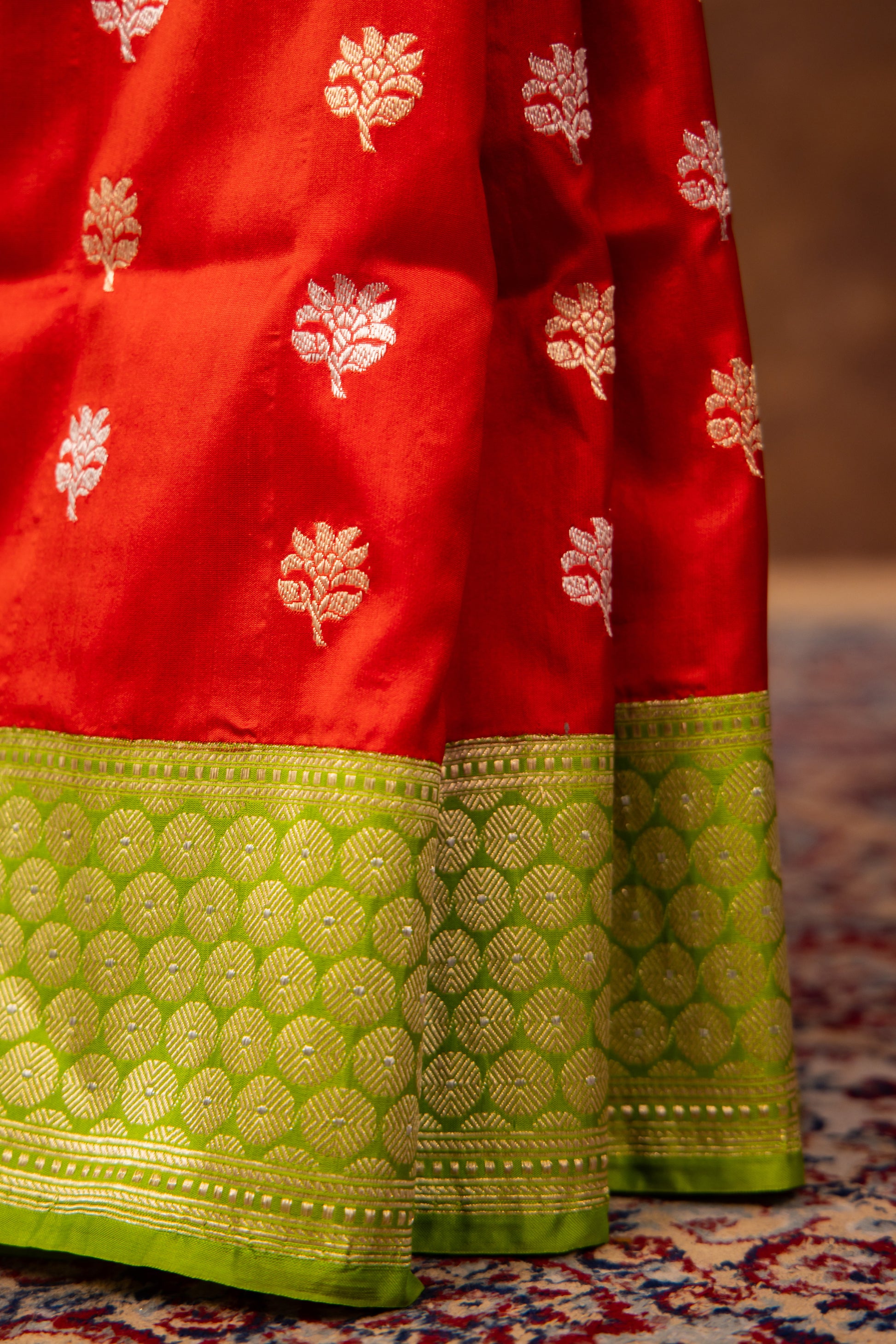 Pure Katan silk Kadhwa Jangla with Kadiyal Border Banarasi Saree