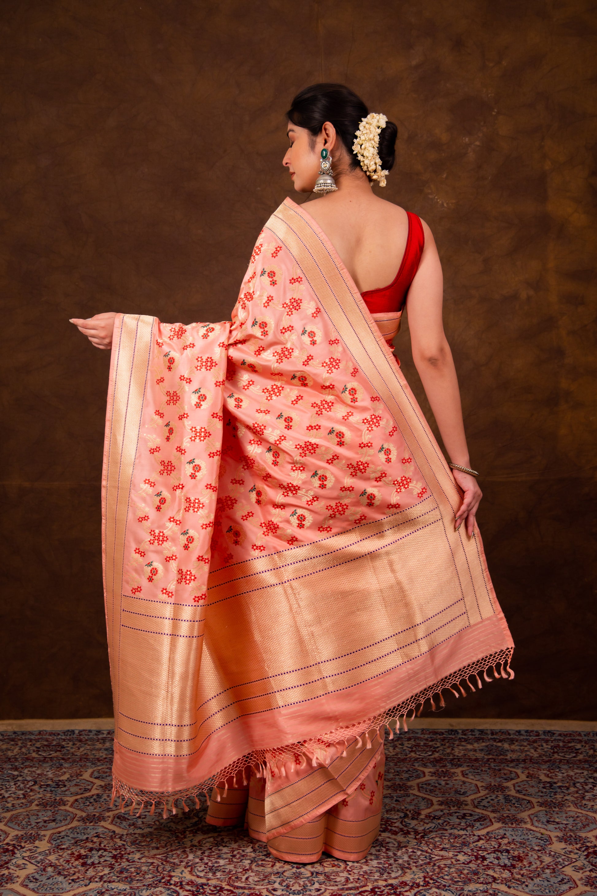 Pure Katan Silk Meenakari Jaal Jangla Kadhwa Banarasi Saree