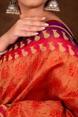 Speciality – A gorgeous silk body woven in the finest Fekwa style with an geometrical border and pallu. An absolutely elegant and understated Banarasi weave with with Contrast Selvedge and Blouse