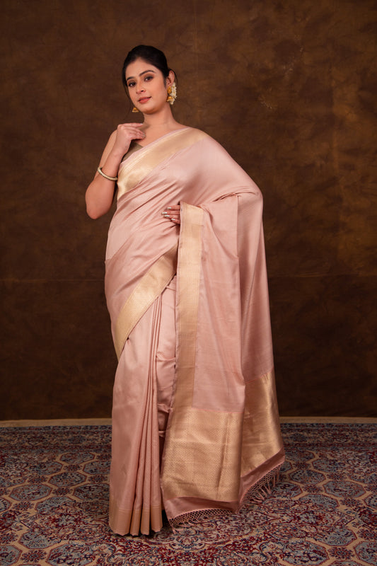 Color – A stunning Pastel Peach Technique – An enduring Kadwa weave with Satin Tanchoi....