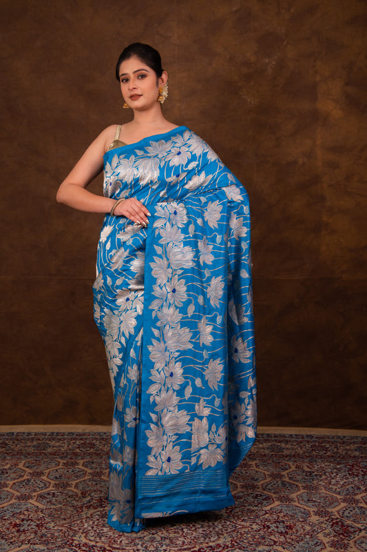 Color – A stunning Aqua Blue Shade Technique – An enduring Kadwa weave with Ganga...