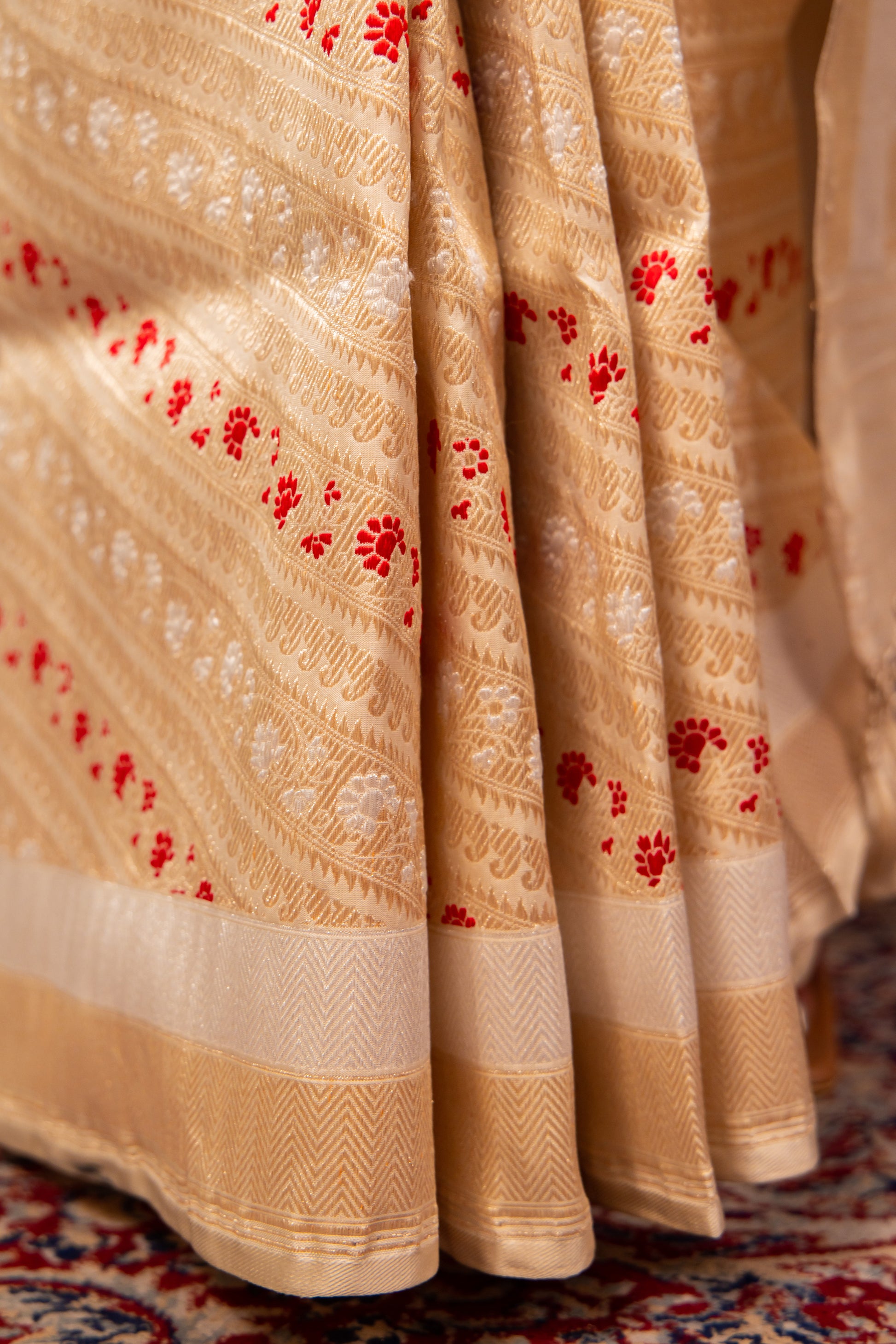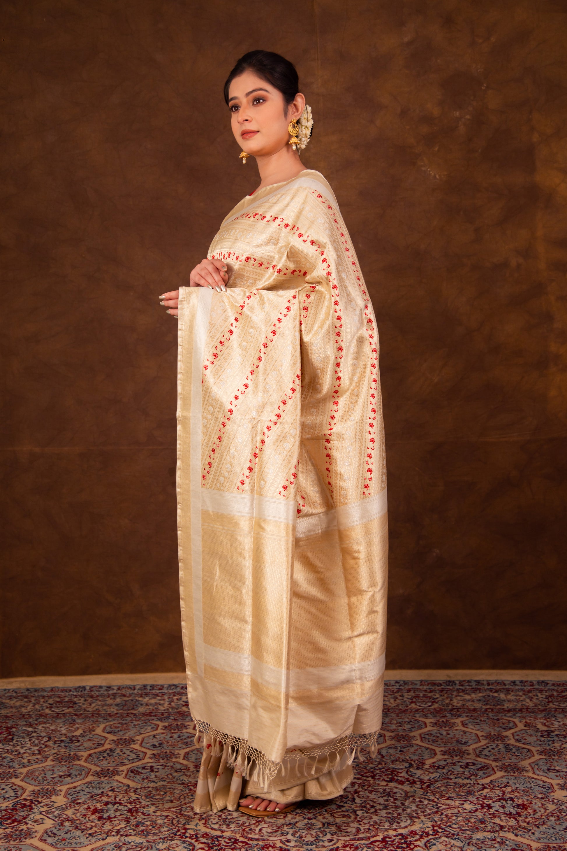 Pure Katan Silk Off White Kadhwa Meenakari Banarasi Saree